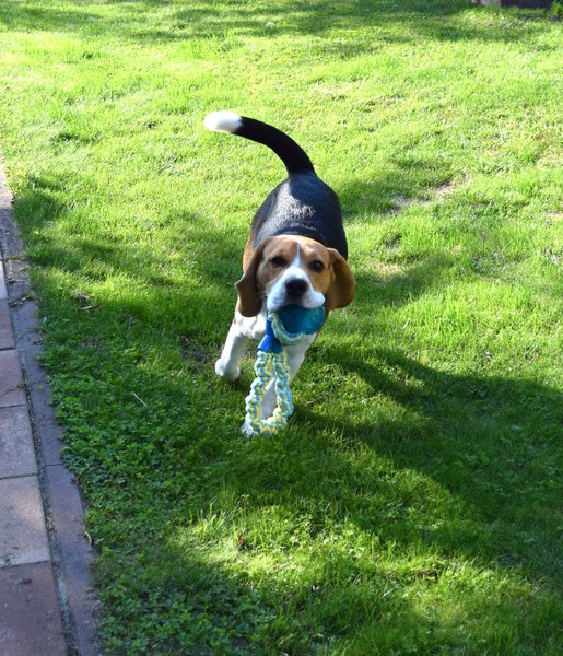 Er entwickelte sich gut und hat sich seinen festen Platz in unserem Rudel erobert. Mama Maggie spielt mit ihm heute noch genauso gerne, wie sie es damals mit ihm als kleinem Welpen getan hat.  Auch unser Rüde Max beschäftigt sich 'als großer Bruder' viel mit ihm und hat ihm alles, was erlaubt und auch nicht erlaubt ist, gezeigt. Nachdem wir mir mit ihm den Zahnwechsel und die Pupertät gut überstanden haben, hat er sich zu einem selbstbewußten, aber auch lernfreudigen und sehr verschmusten kleinen Mann entwickelt. Er hält alle auf Trab und ist uns sehr ans Herz gewachsen.